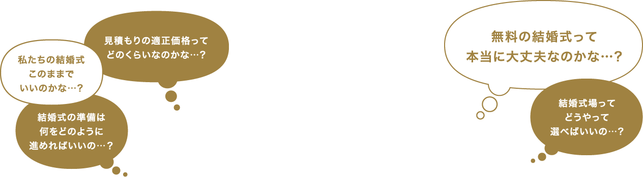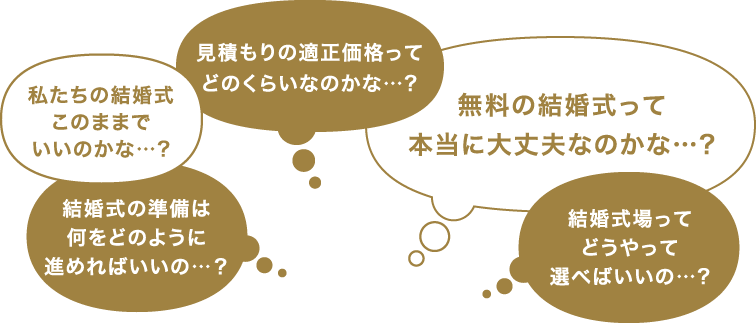 結婚式ができるかどうか不安 - やりたい事を叶えようとすると費用は増えていくし、そもそも本当にやりたい結婚式のイメージがわかない。そんな結婚式のプランニングに関するお悩みをお伺いし、理想の結婚式を見つけるお手伝いをいたします。